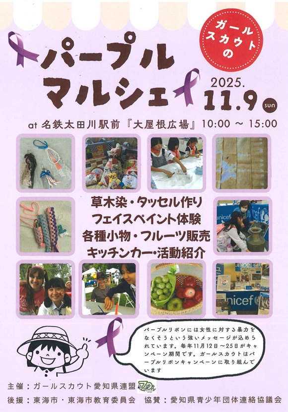 ガールスカウト愛知県連盟主催パープルマルシェを11月9日(日)に開催します!草木染・タッセ...