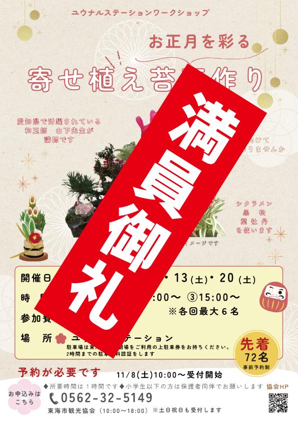 満員御礼!!!ワークショップのご予約、すべて満席となりました。たくさんのお申込みありがとう...