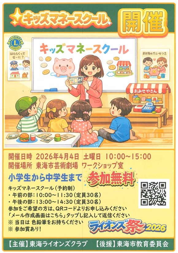東海市芸術劇場ワークショップ室では、キッズマネースクールも開催!