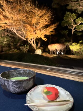 ライトアップされた庭園を眺めながら、美味しいお抹茶をお楽しみください。