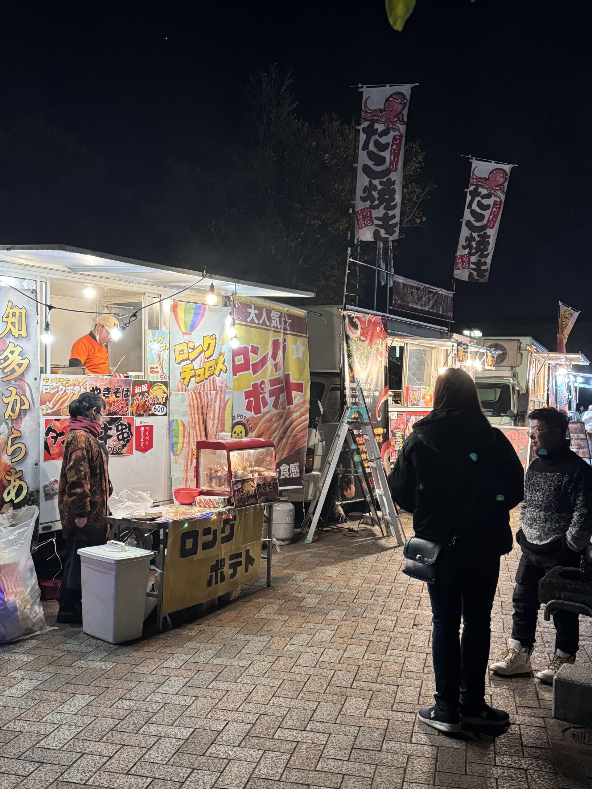 しあわせ村モニュメント広場では、寒い時期にぴったりなグルメが販売されます♪