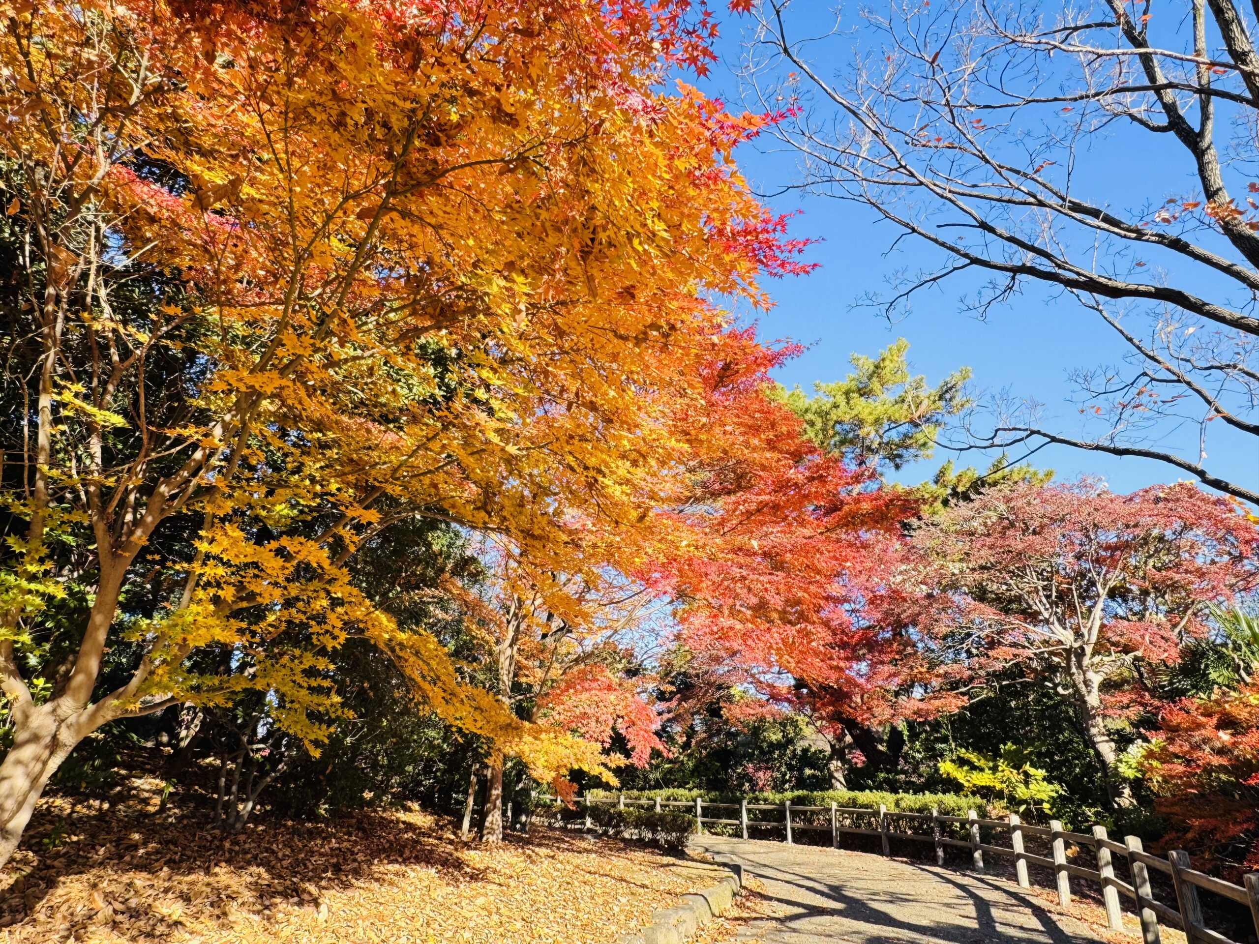 イロハモミジやヤマモミジなど公園内に植えられた約500本の紅葉が